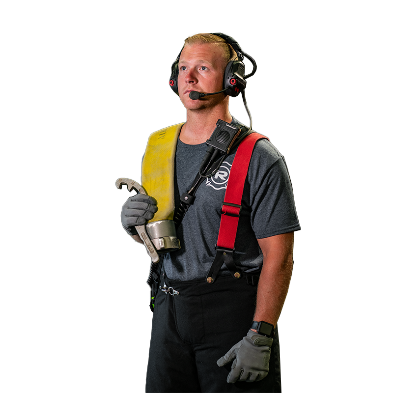 The system consists of the REDLINE Liberator IV Headset and REDLINE Fire Speaker Microphone (FSM) and is protected from high-pressure water spray. The REDLINE headset can be worn in the behind the head configuration for wear with a helmet or configured with our over-the-head suspension for a traditional headset fit.